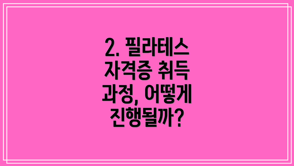 A2: 자격증 취득 과정은 필라테스 학원 등록, 필기시험, 실기시험, 그리고 자격증 발급 순으로 진행됩니다.